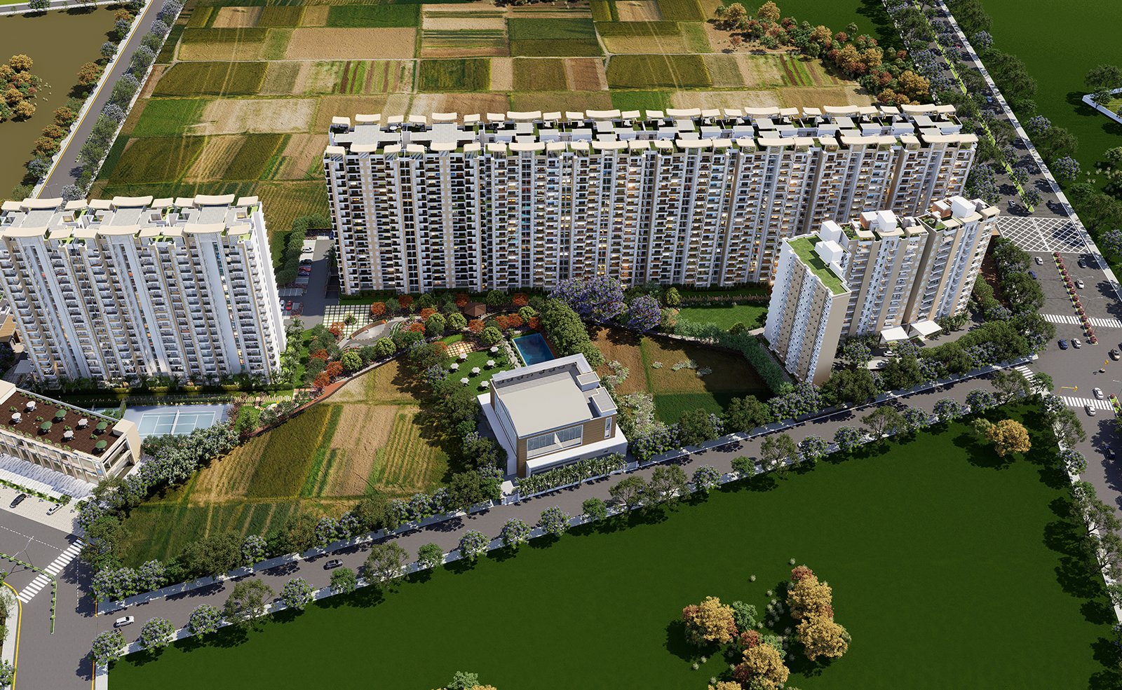 Sprawled across 11 acres, offering 1, 2 & 3 BHK residences across 14 high-rise residential towers, rising up to B+S+18 floors.