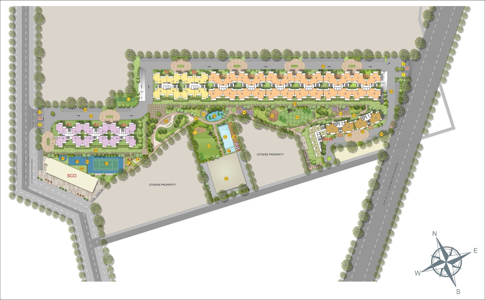 Residents enjoy cricket grounds, lawn tennis, basketball, badminton courts, cycling and jogging tracks, yoga decks, amphitheatre, and swimming pools.